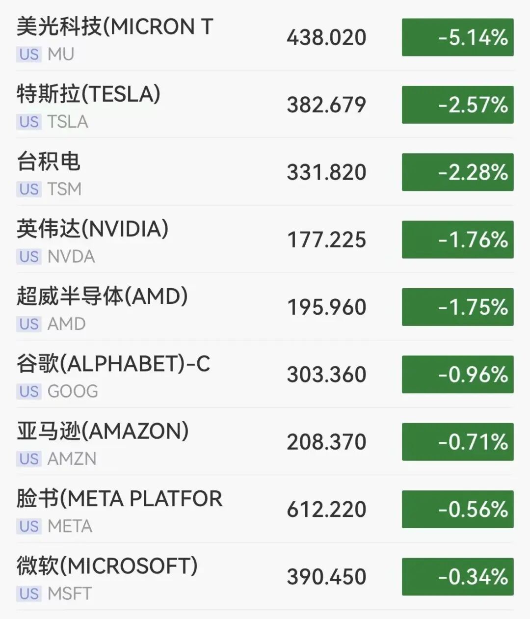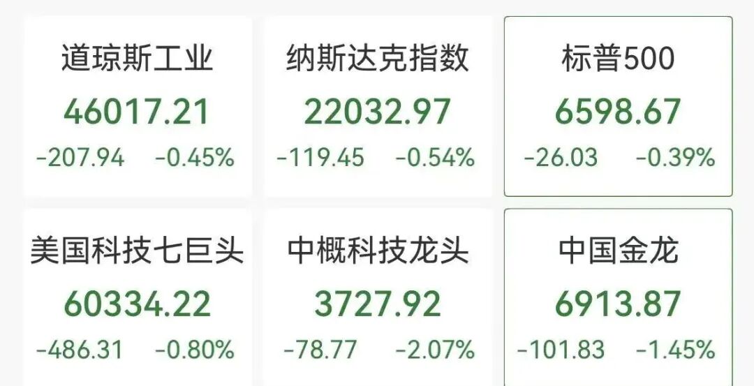 其中,科技巨头、芯片股集体下挫,费城半导体指数开盘跌超3%,目前跌幅收窄至1.2%。个股方面,美光科技跌超5%,特斯拉跌超2.5%,英伟达跌超1.7%。